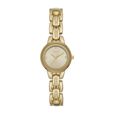 Fossil Watch Womens Stainless Steel Gold Water Resistant Battery White Quartz Watch Liquidators